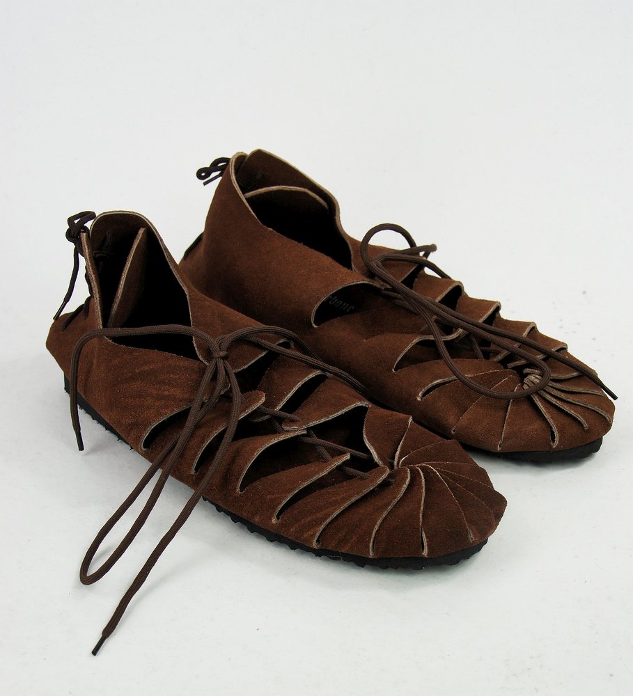 Klassischer Mittelalter-Bundschuh aus hochwertigem, ca. 4 mm dickem Veloursleder.