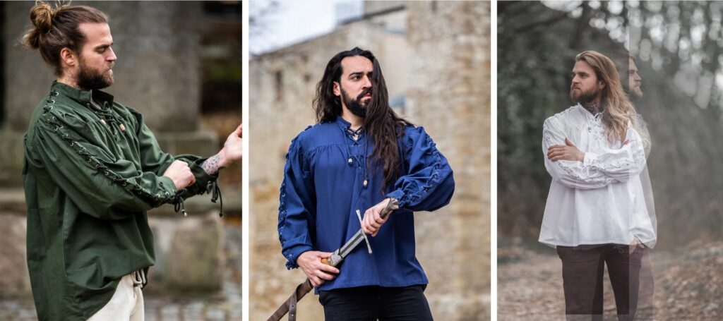 Das Design unseres Hemdes orientiert sich an den robusten und gleichzeitig raffinierten Kleidungsstilen des Mittelalters. Ösen und Schnürungen waren damals nicht nur schmückende Details, sondern boten praktische Anpassungsmöglichkeiten – genau wie bei unserem Modell Adrian. Erlebe die Geschichte der Mode und spüre die zeitlose Eleganz dieser Epoche.