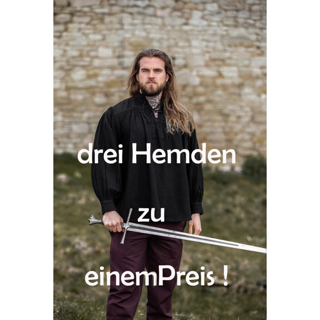 Dieses Hemd ist ein typisches Mittelalterhemd und eignet sich hervorragend für Mittelaltermärkte, Ritterfestspiele oder Burgfeste. Es ist in den Größen S bis 3XL erhältlich.