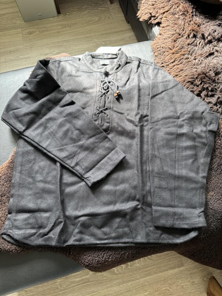 Gerade an den kühleren Abenden ist dieses unauffällige Hemd perfekt zum drunterziehen. Wenn einen ein Umhang zu sehr in den Bewegungen einschränkt, ist das Wollhemd eine tolle Alternative!
