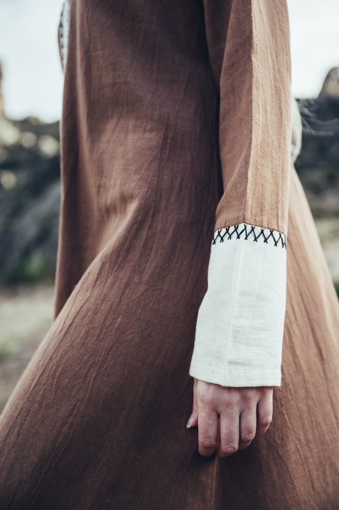 Zweifarbiges Wikinger-Kleid: Baumwolle trifft aufwändige Handstickerei