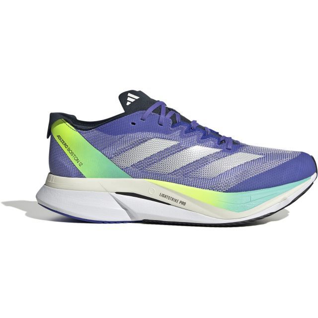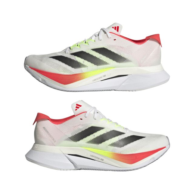 Das Design des Schuhs ist darauf ausgerichtet, Geschwindigkeit und Strapazierfähigkeit zu vereinen. Die ultraleichte Lightstrike Pro Dämpfung in Kombination mit dem neuen robusten Lightstrike 2.0 EVA-Schaum sorgt für eine ideale Balance zwischen Schnelligkeit und Komfort, damit Du Dich voll und ganz auf Deine Performance konzentrieren kannst. Dank seiner optimalen Passform und dem atmungsaktiven Obermaterial aus recycelten Materialien bietet der Adizero Boston 12 nicht nur erstklassige Leistung, sondern auch ein angenehmes Tragegefühl, das Dich bei jedem Schritt unterstützt. Die Laufschuhe sind darauf ausgelegt, Dir maximale Bewegungsfreiheit und Stabilität zu bieten, damit Du Dein volles Potenzial ausschöpfen kannst.