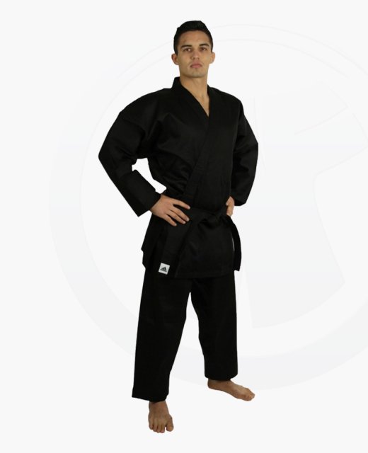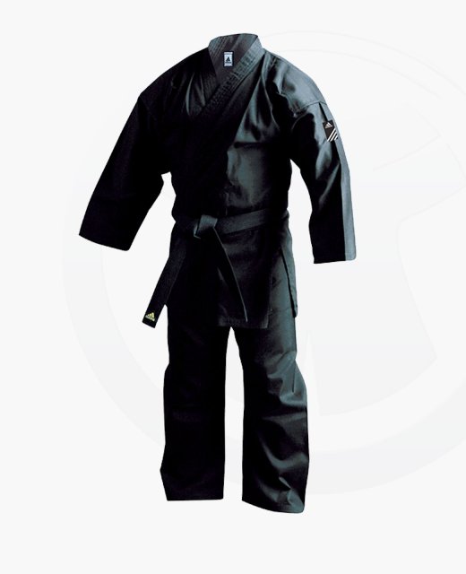 Schwarzer Karateanzug aus feiner Baumwolle.