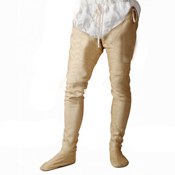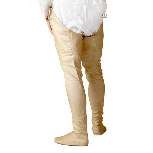 Diese Beinlinge werden nach Maß gefertigt. Dazu bedarf es der Maßtabelle, die ihr unter Informationen auf der Startseite findet. Hergestellt wird dieses authentisch anmutende Kleidungstück aus einem Stoffmix aus Baumwolle und Leinen.