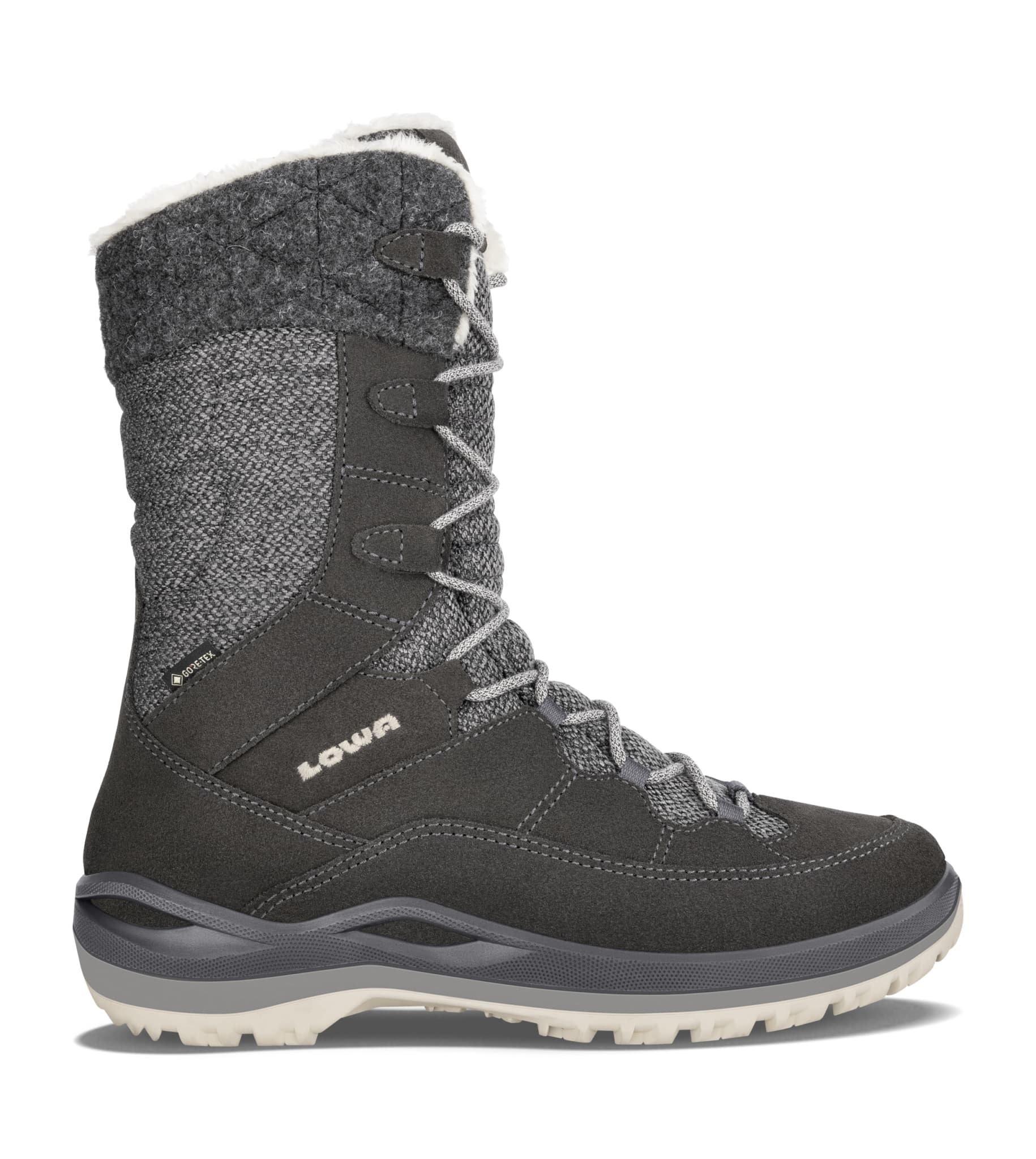 Es muss kein Widerspruch sein, sich selbst treu zu bleiben und zugleich immer wieder neue Akzente zu setzen. Genau das gelingt auch den trendigen Winterboots. Denn obwohl der neue BARINA III GTX Ws optisch komplett überarbeitet wurde, bleibt in puncto Funktionalität alles beim Alten. Das gilt sowohl für das robuste Material mit gesteppten Elementen aus Mikrofaser, Filz und Spaltleder als auch für den patentierten LOWAMONOWRAP®-Rahmen, der zusätzliche Stabilität bietet. Wie gewohnt sorgt das kuschelige GORE-TEX-Partelana-Futter bis hinauf zur Wade für besten Komfort in der kalten Jahreszeit, während die TPU-Laufsohle auch abseits nicht geräumter Straßen für den nötigen Grip sorgt. Erfrischend anders fällt hingegen das neue Design am Schaft aus, welches den Winterschuhen fast schon einen edlen Charakter verleiht.