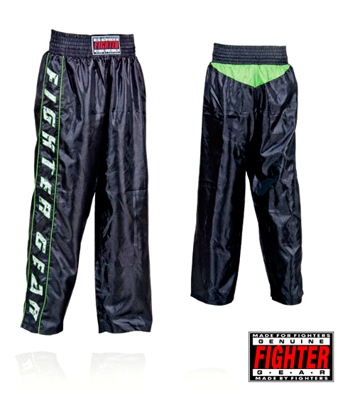 Kickboxhose im neuen Fighter Gear Design. Weit geschnitten mit breitem Elastikbund. Material: Baumwollmischgewebe.