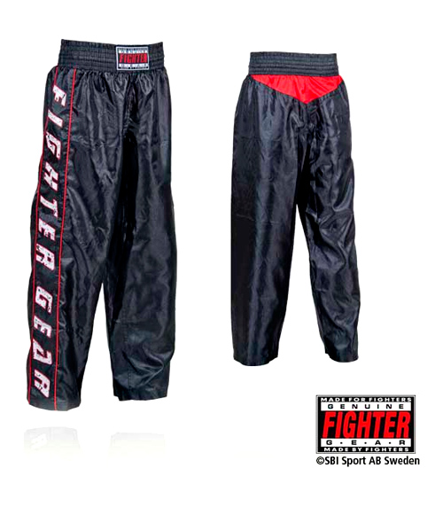 Kickboxhose im neuen Fighter Gear Design. Weit geschnitten mit breitem Elastikbund.