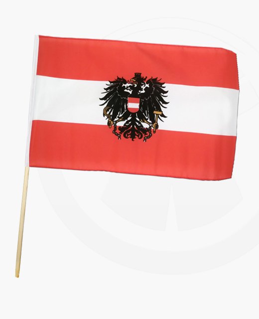Flagge AUSTRIA Österreich mit Bundesadler auf Holzstock
