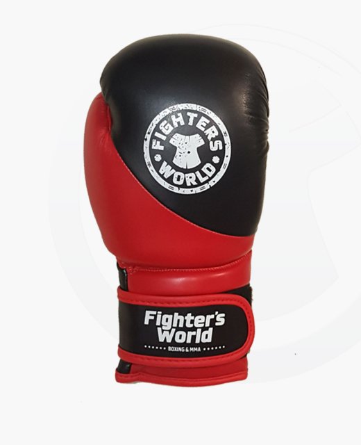 Boxhandschuh aus Kunstleder mit guter Passform und Dämpfung. Mit Griffsteg, angenähtem Daumen und Klettverschluss.