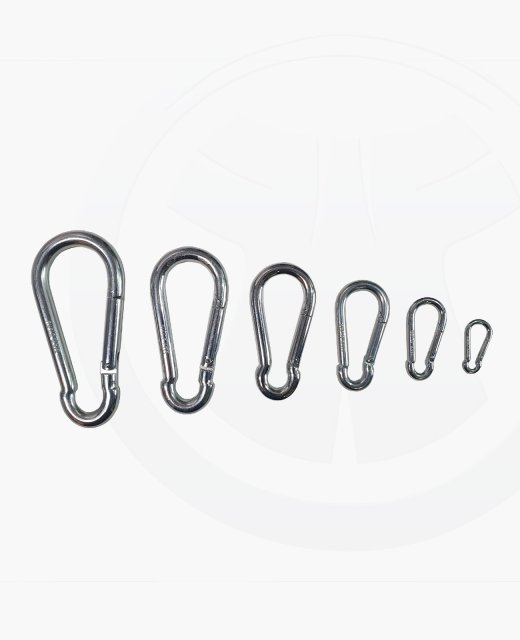 Karabinerhaken verzinkt mit Schnappverschluss in unterschiedlichen Größen. Der Karabinerhaken bietet durch seinen Schnappverschluss hohe Sicherheit und einfache Handhabung.