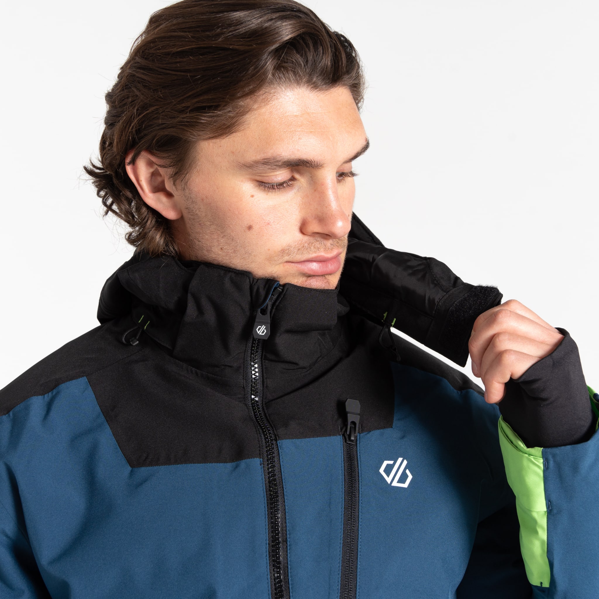 Die funktionale Schirmkapuze mit Kordelzug sorgt für zusätzlichen Schutz vor Wind und Wetter. Sie kann ganz einfach abgenommen werden, um eine windschnittigere Passform zu erzielen, die perfekt für entspannte Ausfahrten oder kraftvolle Abfahrten ist. Der abnehmbare Schneefang bietet zusätzlichen Schutz, damit Sie auch bei Tiefschnee trocken bleiben und komfortabel fahren können.