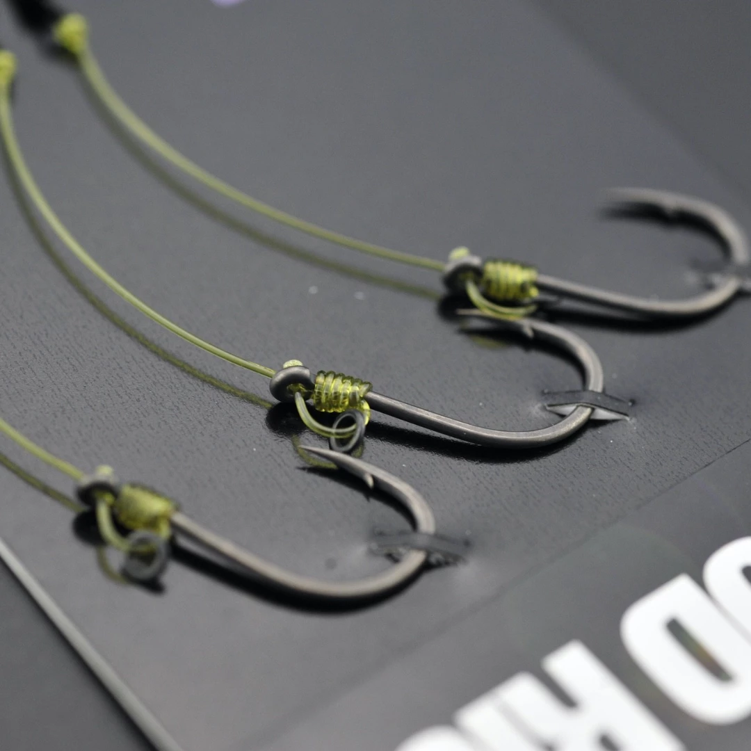 Wir bieten zwei verschiedene Versionen an, lang oder kurz, je nachdem, welche Präsentation Sie bevorzugen. Die kurze Version wird oft für ein Naked-Chod-Setup verwendet. Jedes Chod Rig verfügt über einen Ringwirbel, um es einfach auf Ihre Hauptschnur oder Ihr Vorfach zu fädeln. Sie können zwischen Haken mit oder ohne Widerhaken in den Größen 4 und 6 wählen, mit 12lb und 20lb. Mouth Trap (abhängig von der Hakengröße). Jede Packung enthält drei Chod Rigs, um sicherzustellen, dass Sie bestens ausgestattet sind.