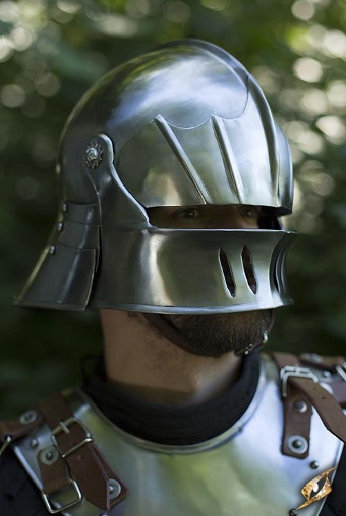 Dieser Schaller wurde im späteren Mittelalter eingesetzt.( 15Jhrd.) Viele Bartträger verzichteten eher auf den Halsschutz (Halsberge) als auf den Bart. Mit der Berge fiel einem schonmal das Atmen schwer, wenn ein Kio Haare im Weg waren. Nicht selten führte diese Leichtsinnigkeit zum raschen Tod!